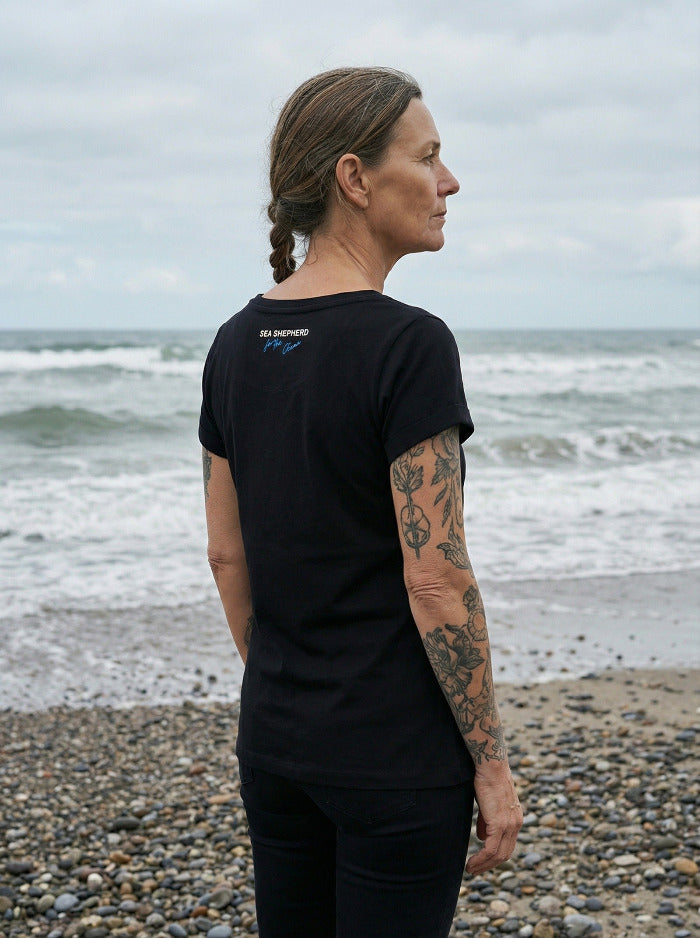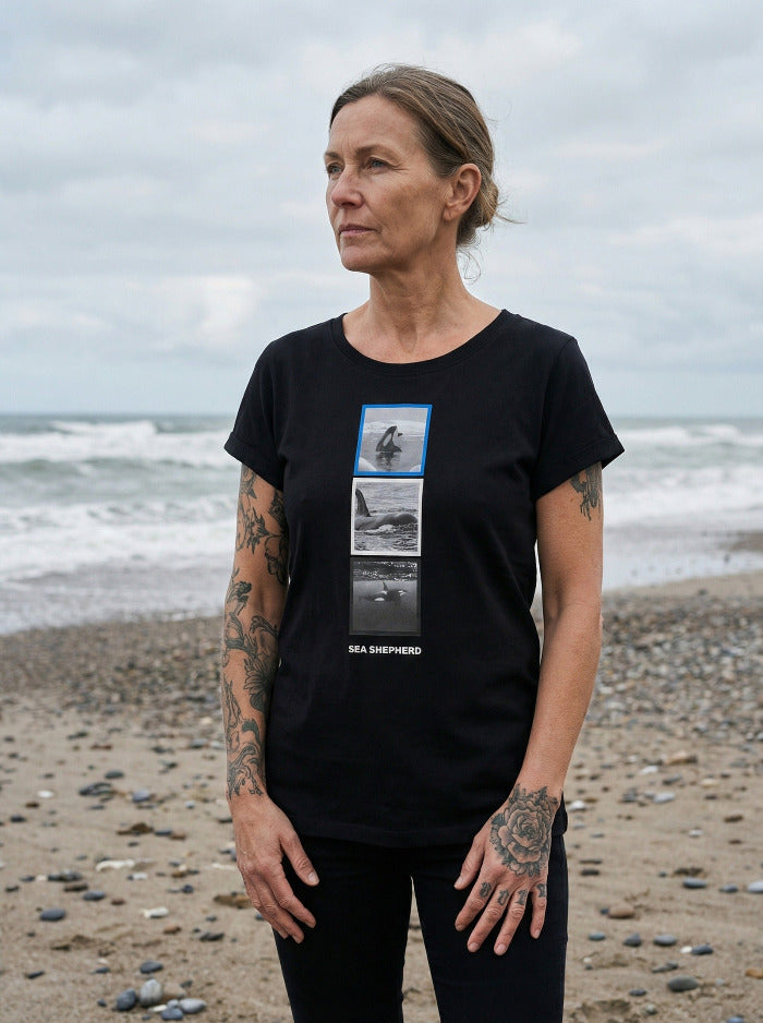 Das Shirt besteht aus hochwertiger Bio-Baumwolle und ist vollständig biologisch abbaubar. Auf der Vorderseite befinden sich drei Foto-Prints, die verschiedene Aufnahmen von Orcas zeigen. Abgerundet wird das Design durch einen gestickten Schriftzug auf der Rückseite des Shirts. Für Frauen gibt es dieses Shirt im lässigen Oversized-Schnitt! Fun Fact zum Shirt: Orcas leben in komplexen und sozialen Populationsstrukturen, von 5 bis zu 50 Individuen. Alle Familienverbände (Schulen) werden jeweils vom ältesten Muttertier (Matriarchin) angeführt.
