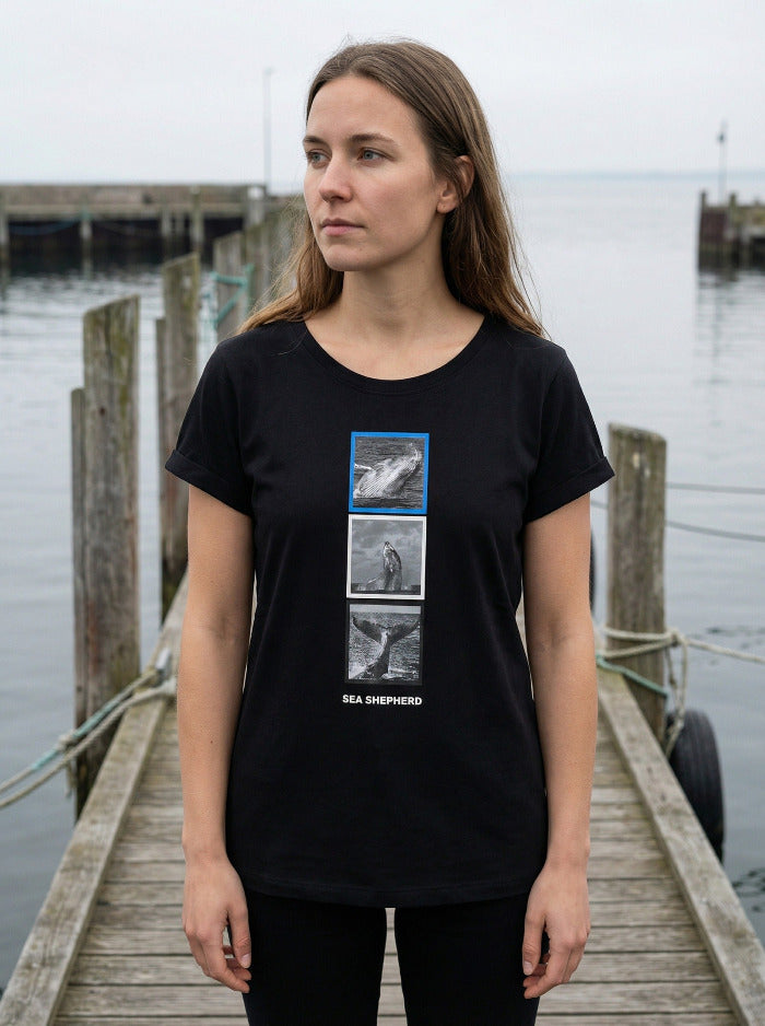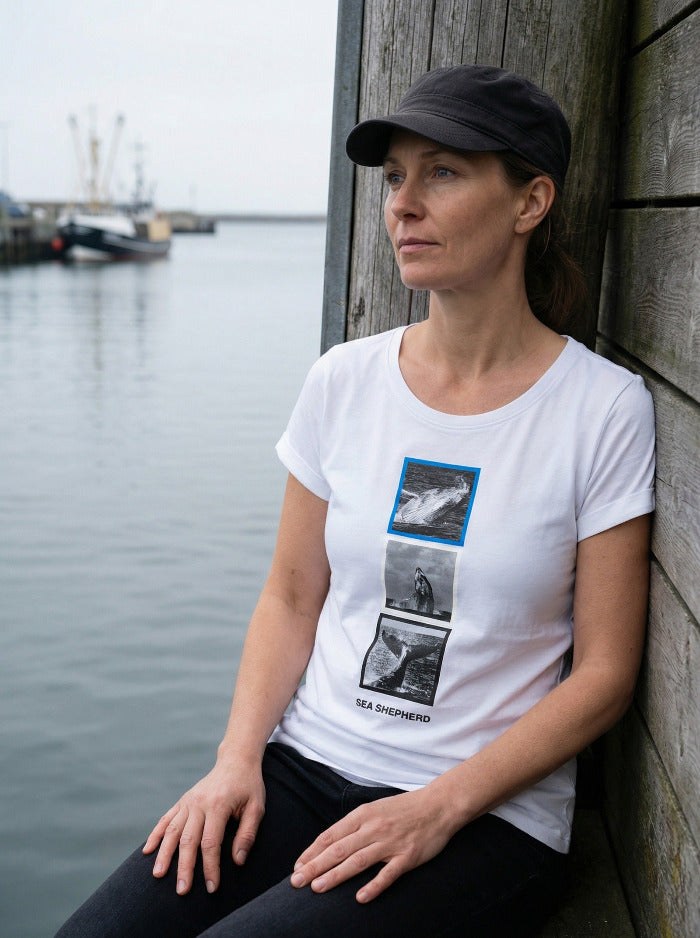 Das Shirt besteht aus hochwertiger Bio-Baumwolle und ist vollständig biologisch abbaubar. Auf der Vorderseite befinden sich drei Foto-Prints, die verschiedene Aufnahmen von Buckelwalen zeigen. Abgerundet wird das Design durch einen gestickten Schriftzug auf der Rückseite des Shirts. Für Frauen gibt es dieses Shirt im lässigen Oversized-Schnitt! Fun Fact dazu: Es gibt weibliche Buckelwale, die eine beste Freundin haben. So finden sich einige weibliche Tiere jeden Sommer zusammen, um gemeinsam zu fressen und zu schwimmen. In diesem Sinne genießt die Sommerzeit in eurem neuen Shirt! 😊