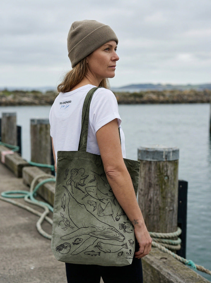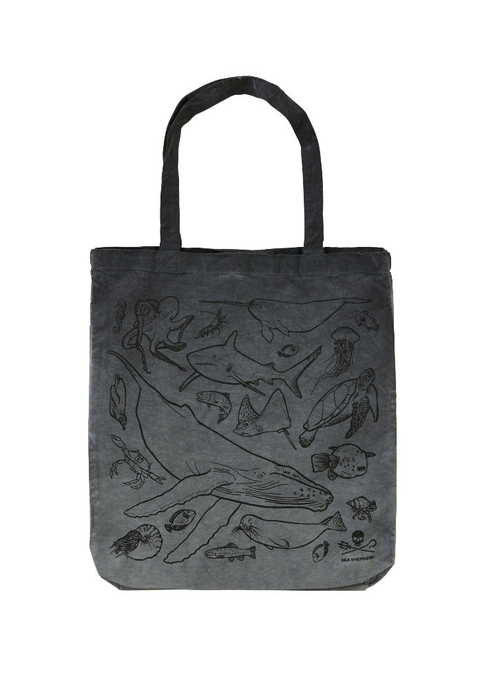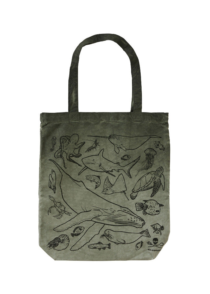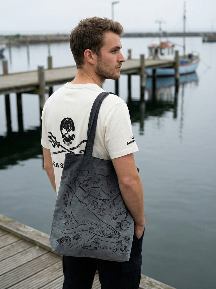 Sauvage et robuste ! Chaque jour, nous parcourons l'océan pour protéger les animaux sauvages. Qu'il s'agisse de baleines, de poissons, de poulpes, de crabes ou de krill, chaque espèce joue un rôle crucial dans la structure des espèces de l'océan. Ce design exprime notre profond attachement aux créatures marines tout en contribuant à les protéger. Le modèle de ce sac a été créé par une activiste de Sea Shepherd en Suisse. Peut-être que tu trouveras ton préféré parmi les 21 créatures marines dessinées?