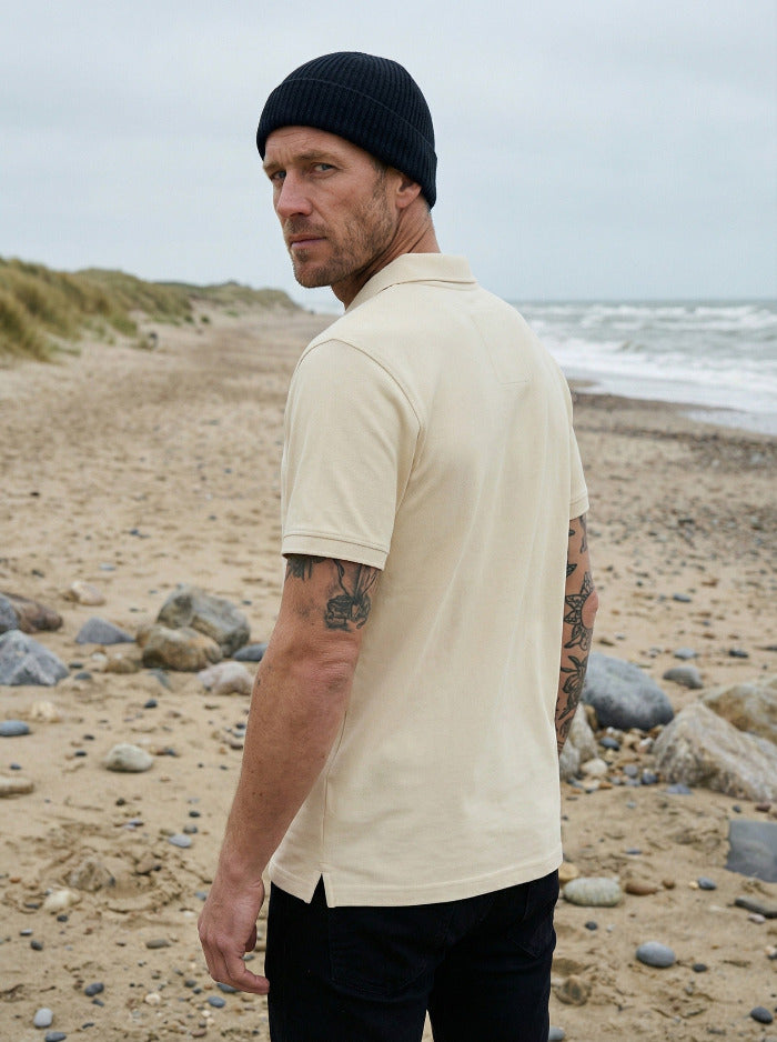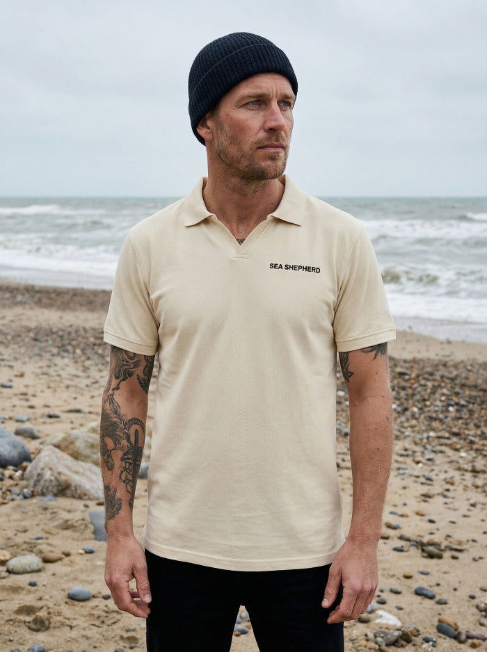 Pas d'imprimé, pas de boutons, non coloré et différent. Le polo classique est maintenant revisité et plus décontracté que jamais. Ce polo est fabriqué en coton bio non teint et dispose d'une courte encolure en V. Sans les boutons, ce classique a un tout nouveau look et se combine parfaitement avec d'autres tenues - que ce soit au quotidien avec un jean ou en été de manière sportive avec un short. À l'exception d'un écusson sur la poitrine et d'une inscription discrète dans le dos, le polo séduit par son style minimaliste.