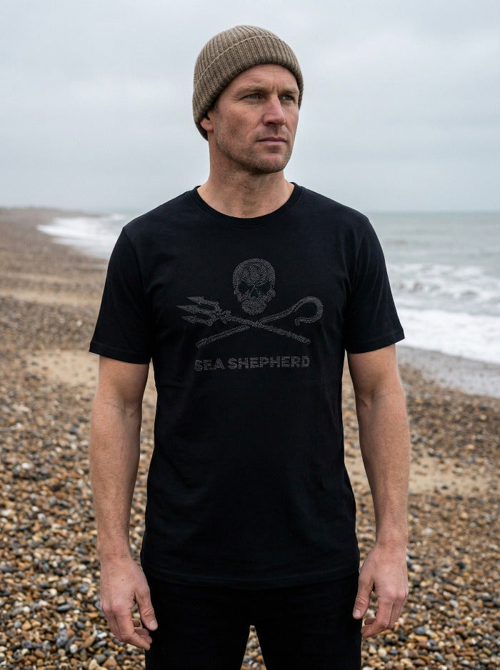 Prix régulier 35,00 €Le logo Jolly-Roger représente notre propre version créative du drapeau pirate. Il a été conçu par l'artiste Geert Vons et montre ce que nous défendons. Le bâton de berger croisé et le trident de Neptune sont le symbole de notre vigilance à l'égard des êtres vivants dans les océans et de notre détermination à nous battre pour eux afin qu'ils puissent librement vivre dans la mer. La tête de mort représente la mort que l'humanité apporte aux océans. Le yin et le yang - la baleine et le dauphin - symbolisent quant à eux notre objectif de rééquilibrer la mer, de préserver la grâce des dauphins et la sagesse des baleines.