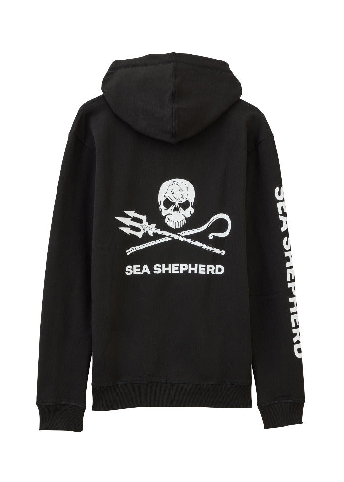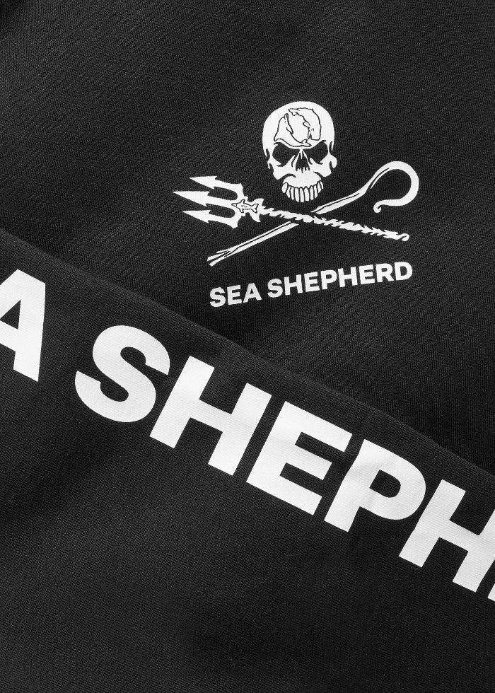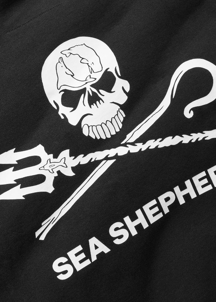 Prix régulier 69,00 €Le logo Jolly Roger représente notre propre version créative du drapeau pirate. Il a été conçu par l'artiste Geert Vons et montre ce que nous représentons. Le bâton de berger croisé et le trident de Neptune sont le symbole de notre vigilance à l'égard des êtres vivants dans les océans et de notre détermination à nous battre pour eux afin qu'ils puissent librement vivre dans la mer. La tête de mort représente la mort que l'humanité apporte aux océans. Le yin et le yang - la baleine et le dauphin - symbolisent en revanche notre objectif de rééquilibrer la mer, de préserver la grâce des dauphins et la sagesse des baleines.